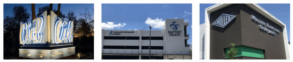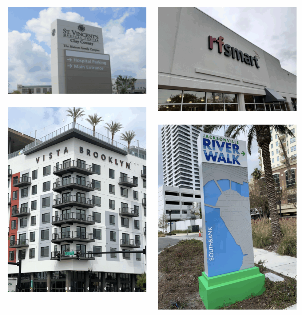 Creative Sign Designs is a leader in the research and development of signs for business. With decades of experience in Florida and around the nation, we can create business signs to meet any new or existing need in the marketplace. With the growth in mixed-use development throughout Jacksonville and the surrounding North Florida area, we are well-positioned to work with developers, contractors, architects, and more to create creative wayfinding and sign solutions to meet the needs of your brand and your business. From multi-family structures to office buildings and hotels to transportation, we have experience across several industries to meet your unique needs.