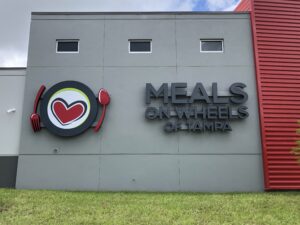 In collaboration with Meals on Wheels of Tampa Bay, Creative Sign Designs was contracted to consult, design, fabricate and install the custom signage for their new building. In our consultative approach, we were able to guide while also showcasing our innovative, unique and experienced process when developing signage.