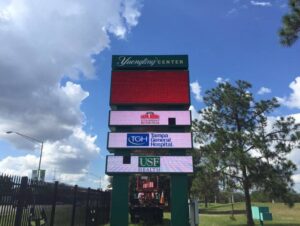 Creative’s team jumped into action producing the renderings, working with engineers, manufacturing the signage and finally installing at the end of October 2018.  We produced four sets of illuminated channel letters, each with Yuengling’s serif font which is intricate.  In addition, we supported the rebrand of the 5/3rd club, helped refurbish the panels on the scoreboard, and finished out a new circular banner that descends from the scoreboard.