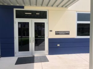 - ADA and Wayfinding Signage: Simple, but unique layered Rowmark signage produced with Creative’s tamper-proof design in accordance with Hillsborough school sign code. The carefully chosen colors complement the architectural elements throughout the campus. Wayfinding ID signage assists with navigation around campus.